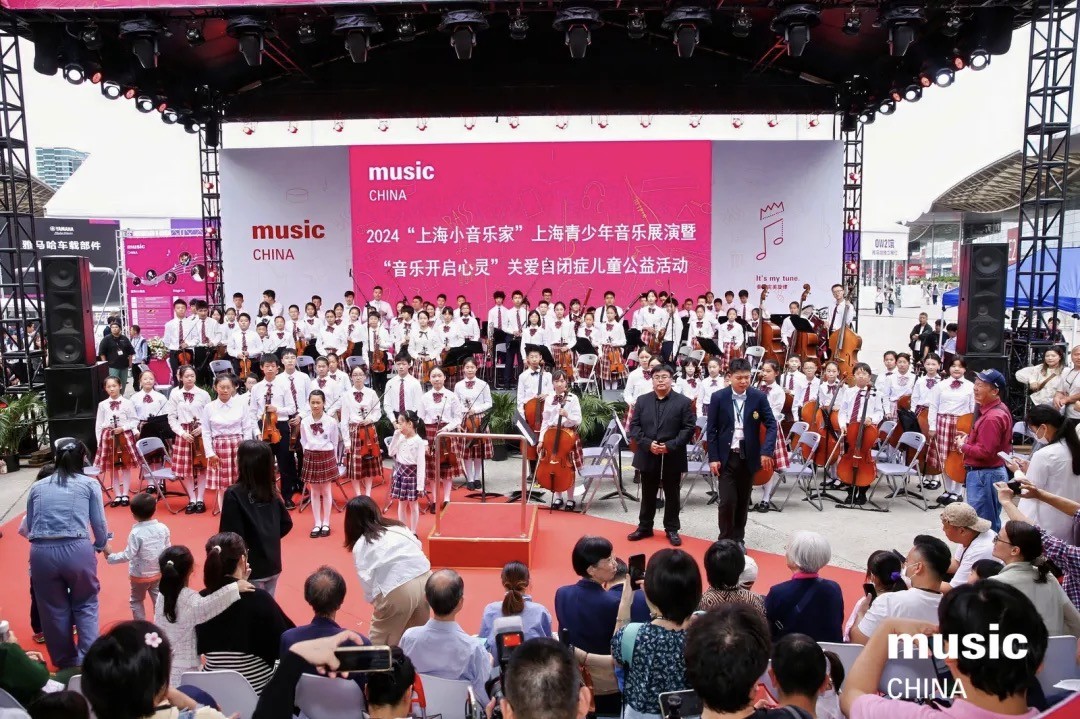 2024 Music China继续承载关爱自闭症儿童公益活动之使命,用音乐为“星星”点灯,用爱与关怀一起完成这场永不结束的追梦接力!在上海音乐家协会儿童音乐专业委员会的指导下,由上海市儿童基金会、上海市曹鹏公益基金会、中国(上海)国际乐器展览会主办,上海国展展览中心有限公司、上海校外宝文化发展有限公司承办,江苏奇美乐器有限公司、上海市浦东新区新城小学、钢琴侠爱心单位支持,今天同期联合2024“上海小音乐家”与“音乐开启心灵”活动共同进行了线下展演。通过“上海小音乐家们”与“自闭症儿童”演绎不同音乐艺术的形式,碰撞出不同的音乐梦想,谱写出具有海派特色的青少年音乐展演。